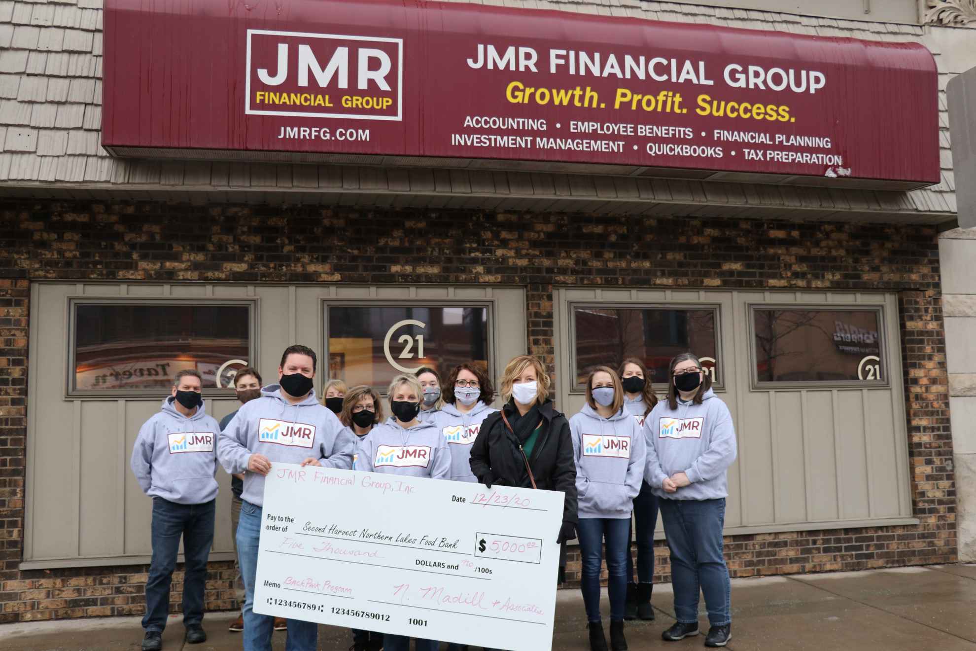SUPERIOR, WI (12.23.2020) — JMR Financial Group is proud to donate volunteer hours and $5,000 to Second Harvest Northern Lakes Food Bank and is encouraging others in the Twin Ports to give or volunteer as they are able. JMR Financial Group serves both businesses and individuals through a cohesive full-service approach to financial services — spanning from investments to taxes, accounting to payroll and employee benefits.